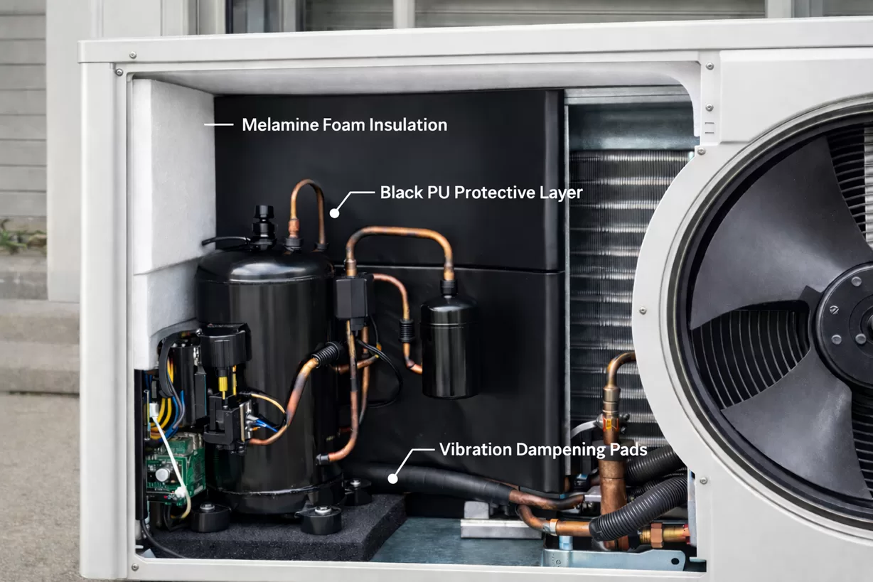 三聚氰胺泡沫在空调外机压缩机舱降噪中的工程价值